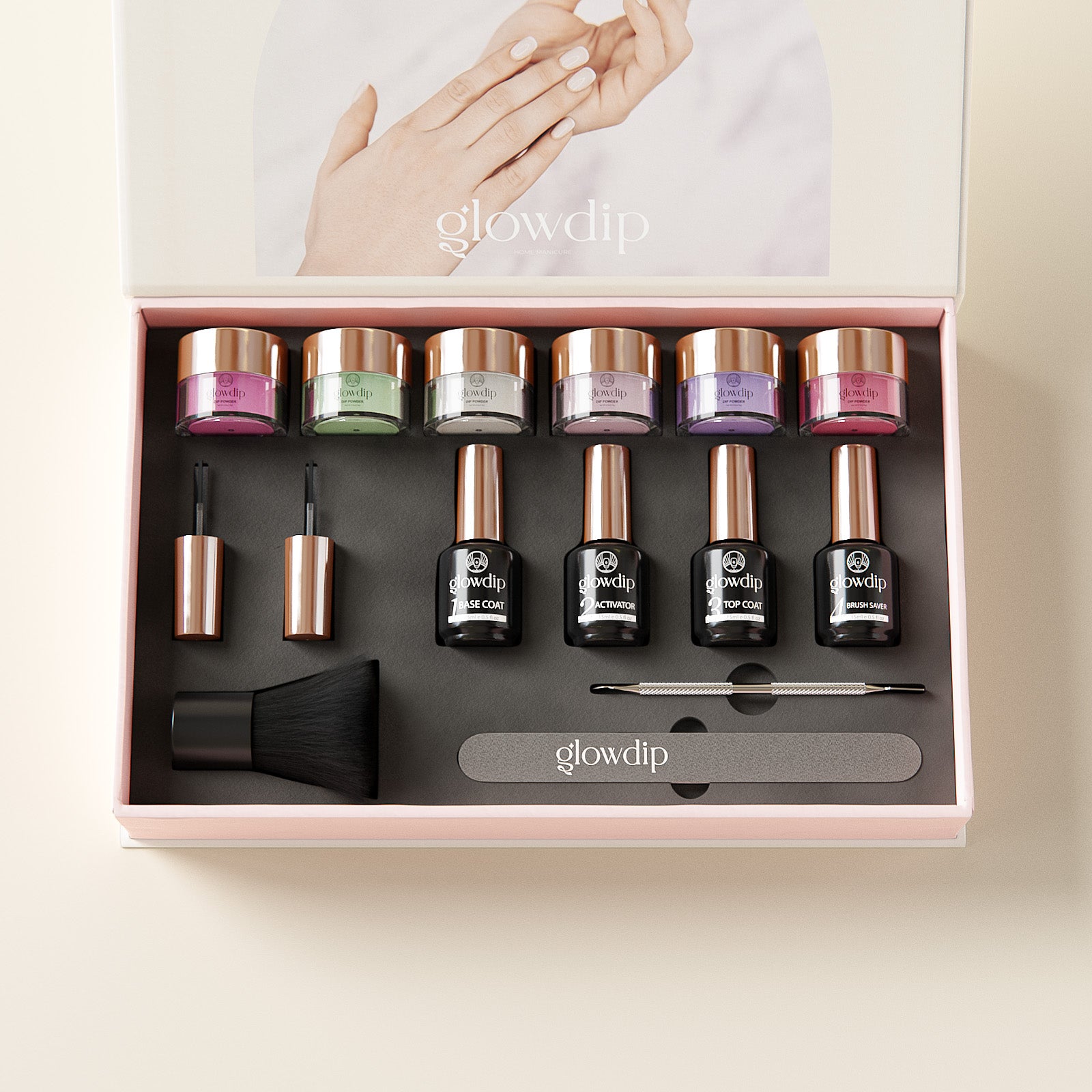Upptäck vårt sortiment av Glowdip startkit och upplev naglar av salongskvalitet hemma.